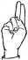 На ћирилици написано ИРЕНА КЛИНЦОВ састоји се из 12 слова [?]. Исписано ћириличном једноручном азбуком за глувонеме: